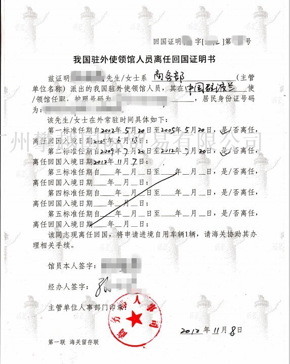 (1)對于需要進(jìn)口家具的中國人:需出示在外國工作數(shù)年的證明和情況說明。